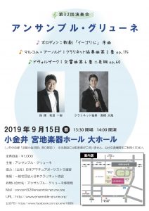 アンサンブルグリューネ第30回演奏会のお知らせです。